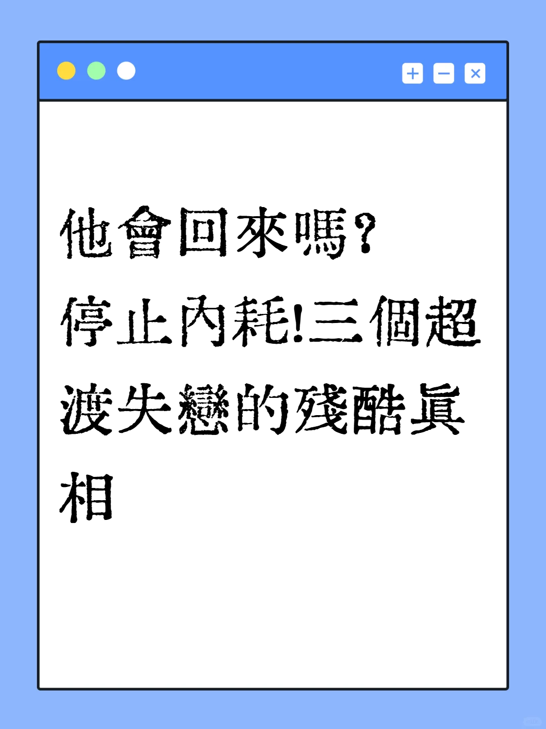 「他會回頭嗎?」停止內耗!很多人以為,分手或離婚後,目標就是「等他回頭」,但其實,這只是讓你在原地打轉,繼續內耗。親愛的,如果你還在原地傻傻等,註定走不出來。 歡迎追蹤+私訊道易老師,讓我幫你釐清你內心真正的渴望以及指導。